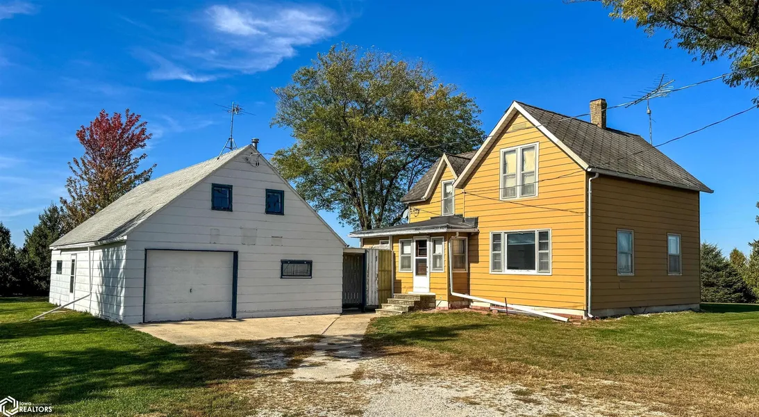 This 3 bedroom, 1 bath home sits in an ideal location with great potential for someone ready to put in a little elbow grease. Located just 2 miles south of Coulter on a paved road and minutes from I-35, this acreage offers 5.26 acres with a strong northwest windbreak grove. Outside, you'll find a 40' x 24' detached garage with a partition separating a two-stall tandem garage from a heated, finished hobby room. There's also a 38' x 76' machine shed divided into a shop and unfinished storage space, both with 14' x 18' overhead doors, plus several other usable outbuildings that add to the property's versatility. (Personal property in SE hog shed not included.)