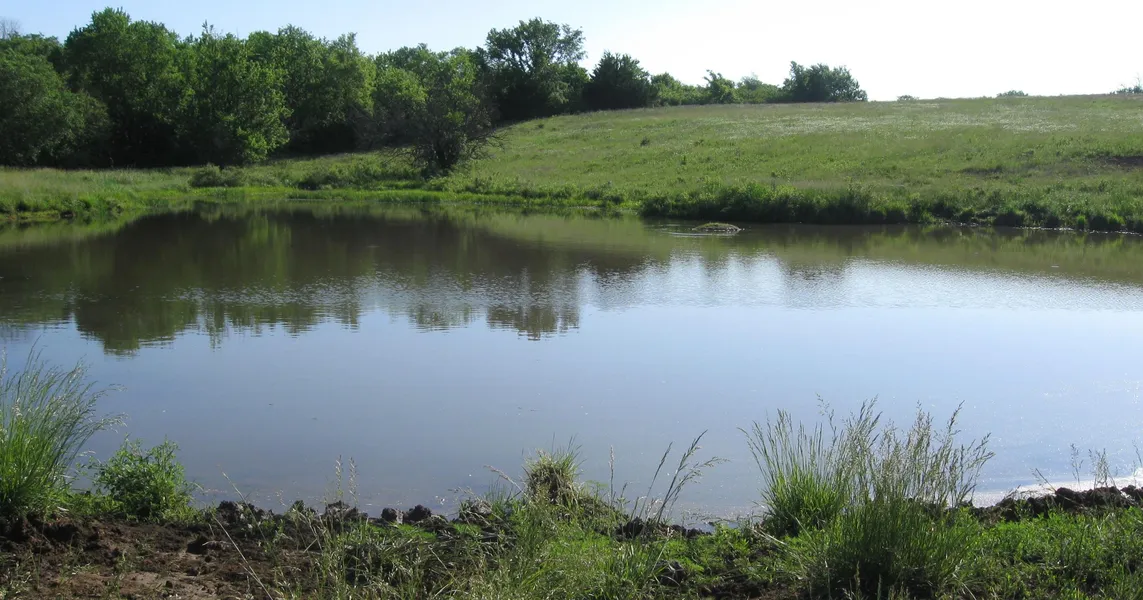 Nice rolling 80 acres of prairie grass/cool grass mix pasture. Good fences, new pipe catch pens, 2 good ponds. Enough trees in the draws to hunt deer in a good hunting area. All on paved road with good access.