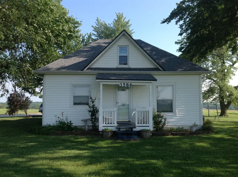 Aunt B's Home; White Bungalow on 3 acres. White vinyl siding. 25x14 Trex Deck. Fresh trendy colors. Large master bedroom. Bath with walk-in closet. A 40x25 shop for the handyman or collector - Concrete floor, wired, ceiling fan. Home overlooks a grass valley with a large pond.