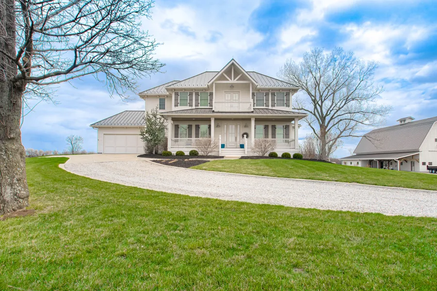 Welcome to Hickory Creek Farm! Comprised of 320 acres m/l of lush cropland, timber, two ponds, and Hickory Creek running through, this property is a haven for wildlife - turkey, deer, quail - and provides prime hunting opportunities. Offering an elegantly modern 4 bedroom, 3 full and 2 half bath, 3500+ square foot home with top line features throughout, the configuration includes two primary suites, a custom bunk room for six, private guest quarters, an office, and craft room. The bright and open living room, gourmet kitchen, and comfortable dining area are perfect for socializing, which is further optimized by the spacious screened-in porch and outside entertainment area surrounding an imported Italian pizza oven. There is an incredible 2-story, 4000 square foot, specially-designed barn that features radiant floor heating, workshop, expansive doors, and is large enough to hold private w...