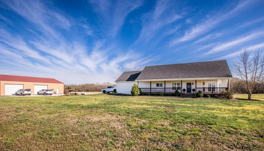What an amazing country home on a paved road!! 10 acres, live creek, timber, large outbuilding with electricity on a concrete floor. The home is a beautiful custom built, open floor plan, ranch on a walk out basement; covered front porch and covered back deck; 2 large master suites, one on the main level and one on the basement level; this 10 acres is also an outdoorsmans dream with deer and turkey hunting right out your back door!!