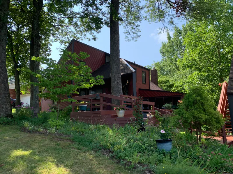 Nestled among mature trees in the Westwood Park subdivision, this contemporary home offers a perfect blend of privacy & convenience. A spacious screened-in porch provides a peaceful retreat. The renovated kitchen is equipped with modern appliances & a quartz bar, creating an inviting space for culinary creations. Hardwood floors flow through the dining area, enhancing the elegant feel. There are 2 freshly carpeted bedrooms & 2 beautifully updated baths. The downstairs bedroom has its own entrance from a front porch & access to a bright, open living space. There is a 2-car garage & plenty of storage, with 2 walk-in-attic spaces. Above the garage, a newly updated & currently rented studio apartment offers a private living space with a walk-in closet, tile bath & cozy loft overlooking the main living area. It also features a new kitchenette, a full-size refrigerator & fresh furnishings including new dishware, stainless cookware & bedding. Large double windows provide peaceful views of the surrounding trees & an occasional glimpse of local wildlife. Located in an established neighborhood on Frankfort's west side, minutes from hospitals, shopping & dining with quick access to I-64.