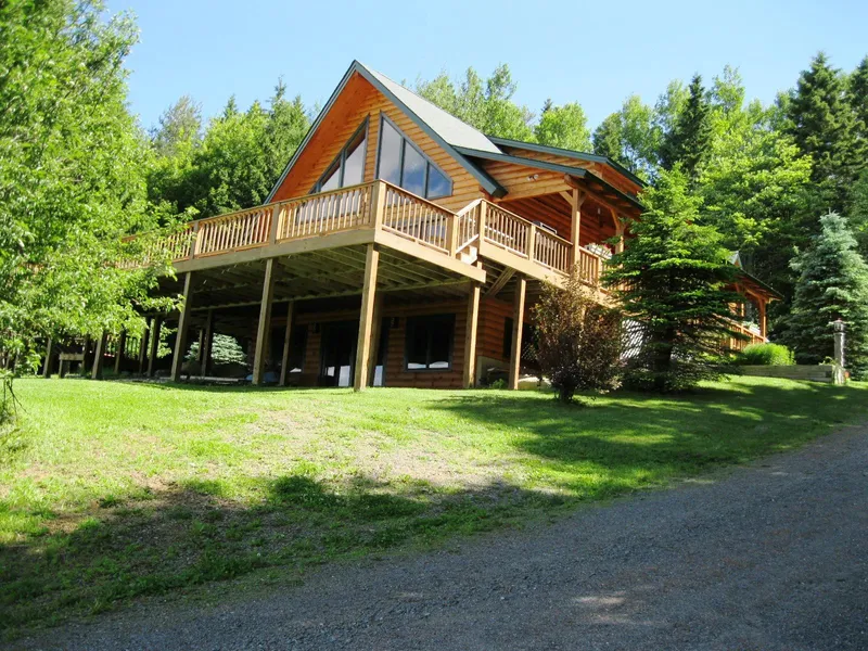 H309 -Custom log home with panoramic views of Rangeley Lake and Bald Mtn. Amazing sunsets from the living room, deck, covered porch, and screened porch. Many nice features from the stone fireplace to the wall of windows in the cathedral ceiling living room. Great spot to entertain your family with 3 floors of living with a full bath on each floor. More living space available above the 2 car attached heated garage. There is also a 4 car detached garage for all your toys all on 2+ acres. Deeded access to lake.