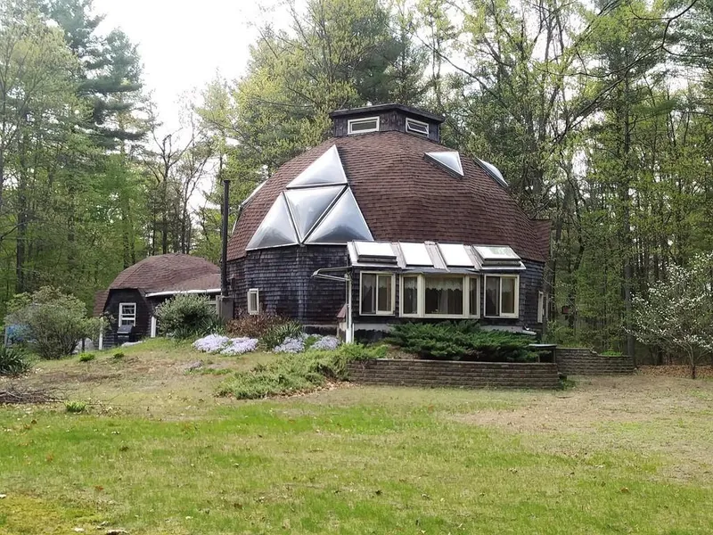 UNIQUE DOME Style Home in a secluded wooded 6 Acre lot that is still within minutes of Umass, Shopping and Restaurants. Great open floor plan as you walk into the entryway and get greeted with an Oak Spiral Staircase and the 4 Pyramid Shaped Windows with wondrous views and natural light. The hard wood flooring in the living and dinning rooms match up well with the curved staircase to the bedrooms. Truly a one of a kind home that's economical to heat (APO) and cool enough in summer. Enjoy a nice get together in the huge back yard with your family and friends and enjoy the burgers, dogs and chips by the fire pit.