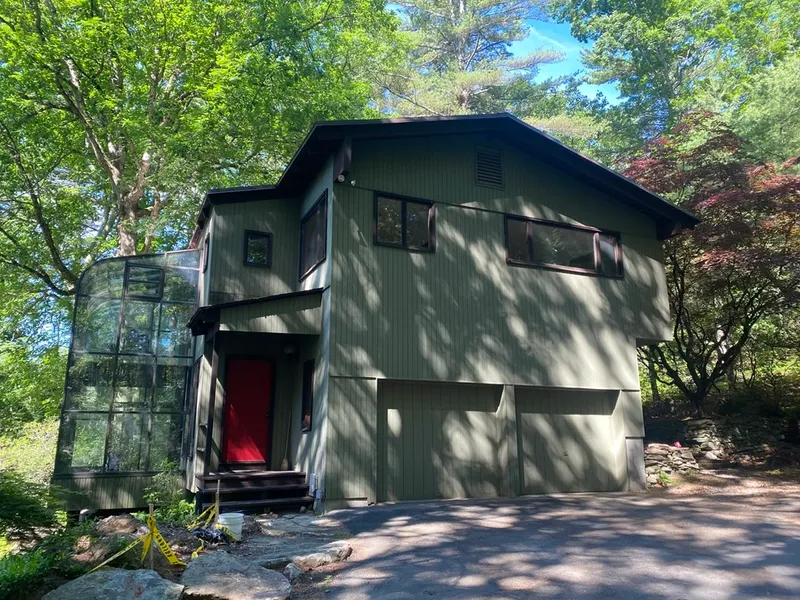 A RARE GEM! This beautiful contemporary home is just waiting for the right new owner to give it some love. Single owner occupied until now, this home brings the outside in with huge picture windows, multiple decks and a two story greenhouse for year round gardening! Open, airy floor plan includes sliding shoji screens, pocket doors, 2 fireplaces and lots of storage. Lower level is fully walkout with big, beautiful windows. Japanese maple trees, mature flowering bushes and lovingly built rock walls create a lush oasis and lots of privacy. You must see this distinctive house to appreciate all it's charms. OPEN HOUSE SAT 6/25 12 - 3pm. PLEASE PARK ON STREET AND WALK UP THE DRIVEWAY.