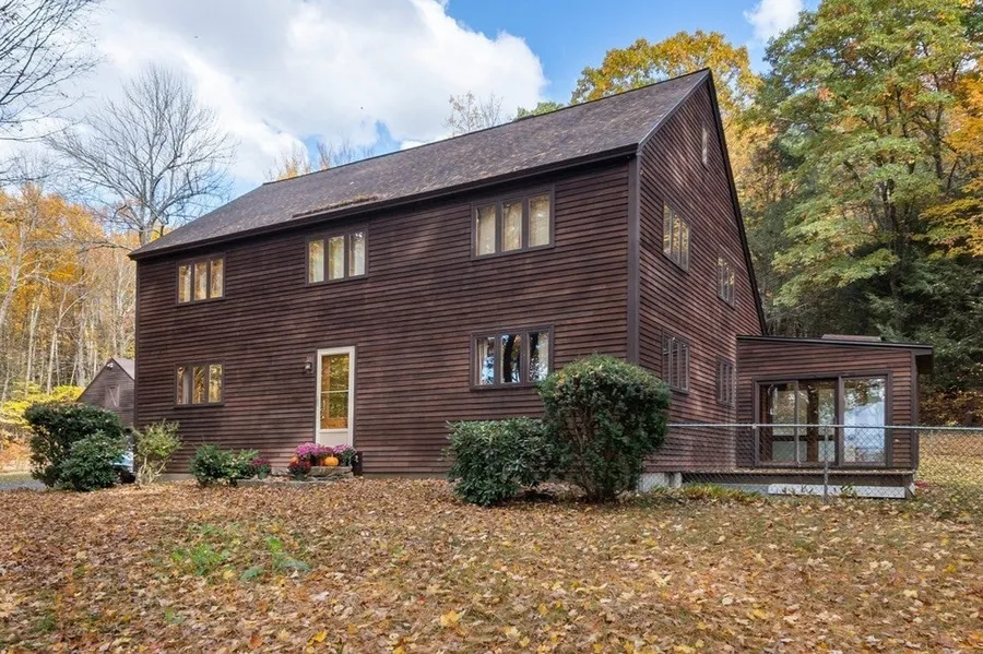 Beautifully situated up a long driveway and on top of the hill, this post and beam cape offers privacy, views, yet easy access to points in all directions. Built in 1986, this home is a lovely surprise with much more space than it appears. The sensible layout offers many options such as a first floor bedroom or a dining room, a finished walkup attic or a studio, a full basement with high ceilings for finishing or great storage. Featuring 3 bedrooms, 3 baths, 7 rooms and a detached 2 stall garage with a second floor ideal for a studio or storage. Solid post and beam construction, wood and tile flooring, solid panel doors, built ins, are just some of the high-quality features offered in this home. Open field, fenced in yard for the pets, and trails into the 11 acres of woods make this home the deal place for outdoor enthusiasts!