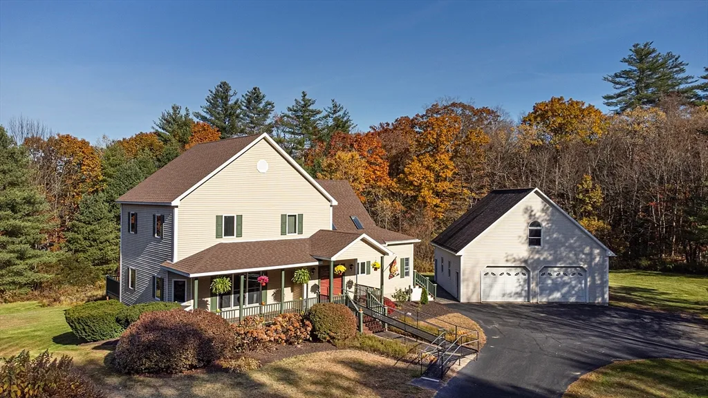 Wonderful, expansive contemporary home set on over 5 acres of land with 2 streams amidst the natural beauty of the hills of Buckland. Featuring over 3500 sq ft ,including a finished walkout basement, this 8 room,4 bedroom,2 full and 2 half-bath home with cathedral ceiling and balcony offers a fabulous floor plan for family living as well as a country getaway for seasonal recreation. Enjoy the beauty of your surroundings from a 58x13 deck as well as a spacious and welcoming front porch and patio with firepit. As an additional bonus, the 36x32 garage with high ceilings, water,electric,septic connection and large walkup space offers a terrific opportunity for expansion and creative use such as studio, home office or au pair living. Nearby you'll find Berkshire East and Zoar Outdoor, offering year-round recreational activities and the historic village of Shelburne Falls with its Bridge of Fl...