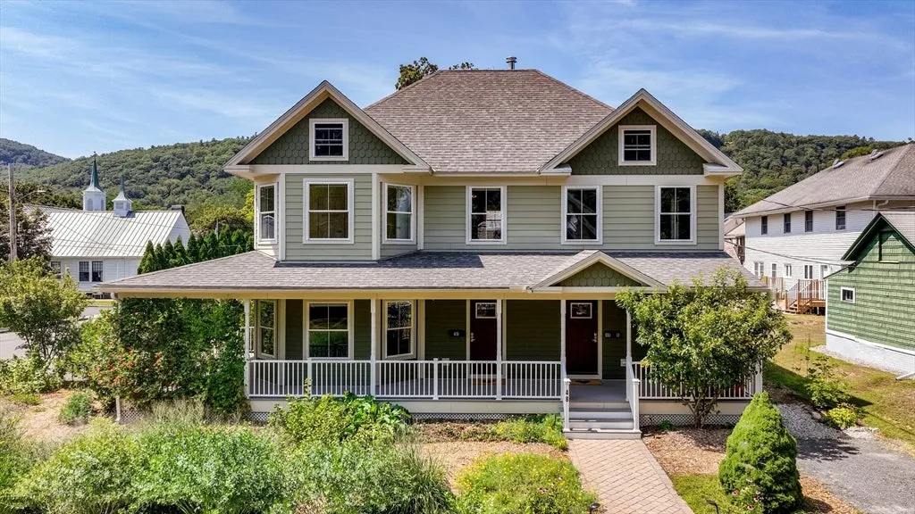 Located in the picturesque New England Village of Shelburne Falls you’ll find this truly unique 5 bdrm/3ba home within steps of a vibrant town and the Bridge of Flowers. When built in 2012 the important details were addressed w/quality finishes throughout & a stunning contemporary style w/a nod to the Victorian architecture so prevalent in the area. Oversized windows throughout look onto scenic views of the surrounding hills. There are 2 complete living spaces. The largest space offers 4 bdrm/2ba & includes a gourmet kitchen w/cherry cabinets, granite countertops & island w/separate dining room. The open concept is warmed in the winter w/a pellet stove. The apartment enjoys the same quality finishes w/laundry within the unit. 2 Buderus boilers, oil tanks and electrical service provide for separate utilities. Hardie Plank siding, lg wraparound porch & a yardscape designed for low maintenance round out this lovely offering. Open House Sat 11-1 but showings begin immediately.