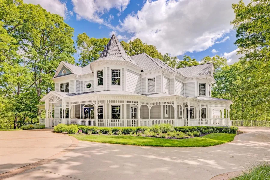 Classic 1.5 story with wrap around country porch situated on 5 picturesque acres. True craftmanship thru out. Near great schools and shopping. This home offers all the amenities you desired. Two-story great room w/ Fireplace, Custom crafted Library, 1st floor Master Suite w/FP, whirlpool and separate shower & walk in closets. Main floor laundry. 2nd floor features office with stone F/P. Gourmet Kitchen has center island, custom cabinets, and a replica of an old gas stove. Lower level has Living area with F/P, Billiards room, Media room, and custom cherry wet bar, full bath and bonus room. Underneath the 3-car garage is a full workshop. Relax after a tough day on the massive deck enjoying nature at its best.