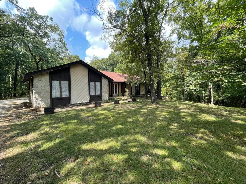 Privacy at it's best with this Ranch home tucked away at the end of a private street, sits on 5.47 acres of beautiful useable wooded land in Wildwood and Rockwood School District. Vaulted ceiling in the great room with see through wood burning fireplace to the dining area. Great room also has built-in cabinets, open staircase to the basement and slider door to the patio. Dining area features wood floors and bay window. In addition there are 3 bedrooms, 1 bath, main floor laundry, den and attached 2 car rear entry garage. Property may be converted to horse property. There is so much potential just waiting for your updates and finishing touches. Seller to do no repairs.