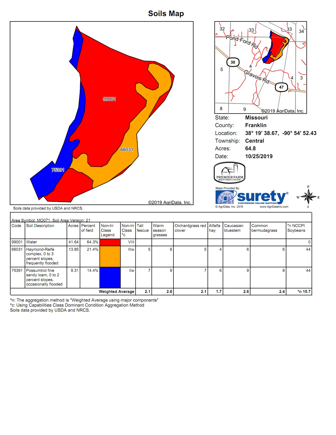 Search for detailed parcel information including; Elevation & Vegetation Maps, Ownership Information, Detailed Parcel Information, Crop History Map, Soil Survey Productivity Data, and more.