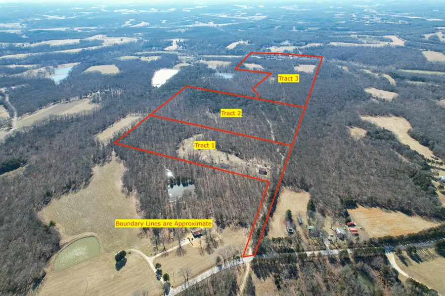 Tract 3: 73 acres of gently rolling fields and woods with cedar thickets, mature hardwoods, and tillable ground with income & food plots! A live creek, called Big Branch, runs through the south end of the property from west to east. Electric runs across the property and there is a permanent deer stand to get you started on your next deer season! A good trail system makes access to all parts of the property a breeze and this tract "hunts big". There is room for several hunters with 6 separate tillable fields and two isolated food plots! A hunter's dream!