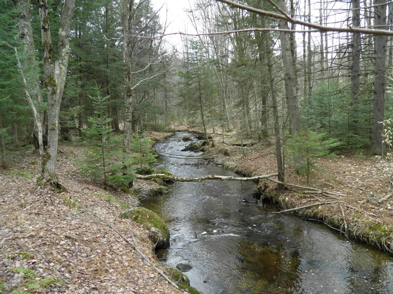 An incredible amount of wildlife diversity is packed in a very small area on this parcel. Testimony is in the deer tracks, scrapes and rubs, turkey scratching, bear trees, nesting geese and upland game birds witnessed in my visit. Young stands of birch, maple, aspen, ash, and cherry are interspersed amongst pockets of older hardwoods and softwoods including; tamarack, pine, spruce, fir and hemlock. Elm, soft maple, ash and alder dominate areas adjacent to the stream, beaver ponds and meadows found predominantly in the southwest corner of the property. Dense, young cedar, spruce, and fir stands provide great shelter. And, on top of all that, the open hay field and wild apple orchard are the 'icing on the cake' for attracting critters to this property! A gently flowing tributary to the Trout River is two-thirds of the western boundary. Just inside the Adirondack Park and previously ...