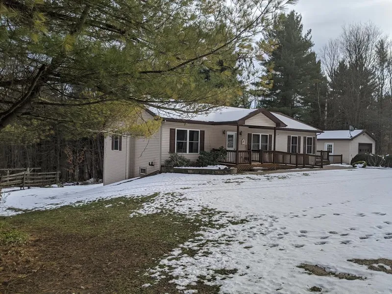Lovely custom built ranch home conveniently located just outside the Village limits yet close to schools, stores, etc. This home is very well maintained and move-in ready. There are two bedrooms and two full baths and a large office space with a closet that can easily be converted into a master bedroom suite with connecting bathroom. The full 52 x 28 basement has sheetrock walls, full size windows and walkout doors. This area could also be converted to additional living space. The one car garage has two levels with the basement level used for equipment, boat or other storage. The kitchen is spacious with beautiful solid maple cabinetry and sliding doors to exterior deck. There is a separate laundry room on the main level. The back yard space is very private looking on to a wooded area. There are numerous decks and stone patio areas for outdoor enjoyment. Home is handicap accessible with ...