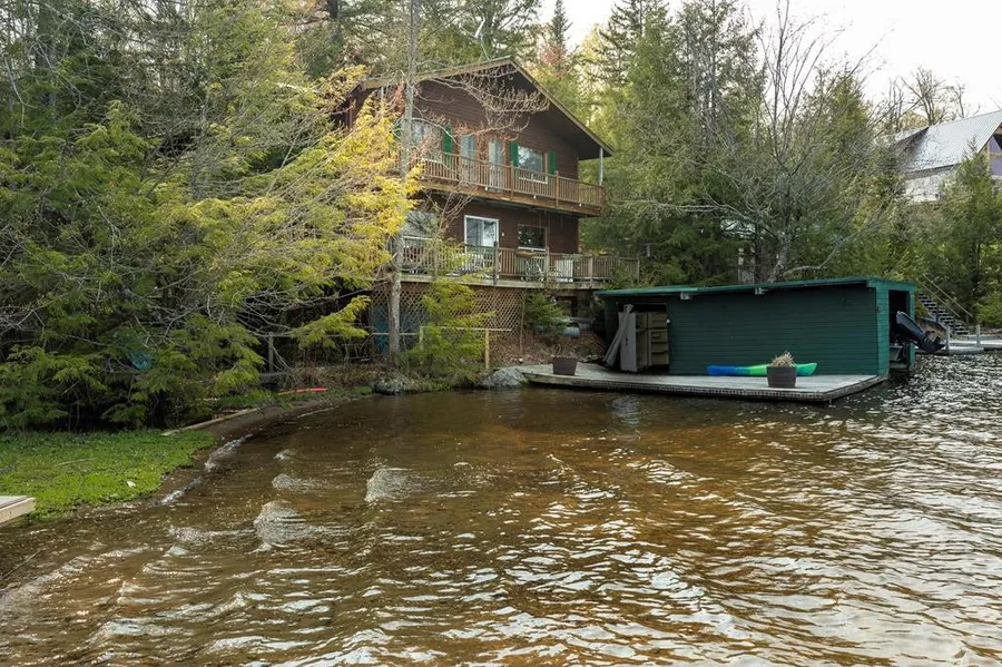 RARE FIND with 6 bedrooms and 3.5 baths ! This lake home is situated on a beautiful private lake with gorgeous mountain views and a spectacular sandy beach shoreline. This is a 4-season property that comes fully furnished. All rooms on the first level have hardwood flooring and there is a wood burning fireplace in the living room to enjoy on cooler evenings. The kitchen is open to the dining and living room areas with lake views. Two bedrooms on the second level lead out to a balcony also overlooking the lake. One of the larger vaulted ceiling bedrooms on the second level also has a separate office space. The boathouse has plenty of storage for a pontoon boat, kayaks/canoes and accessories. There is a patio with a hot tub and a sizable dock at the water for great outdoor entertainment. This property is close to Titus Mountain Ski Center as well as the 36 hole championship Malone golf cou...