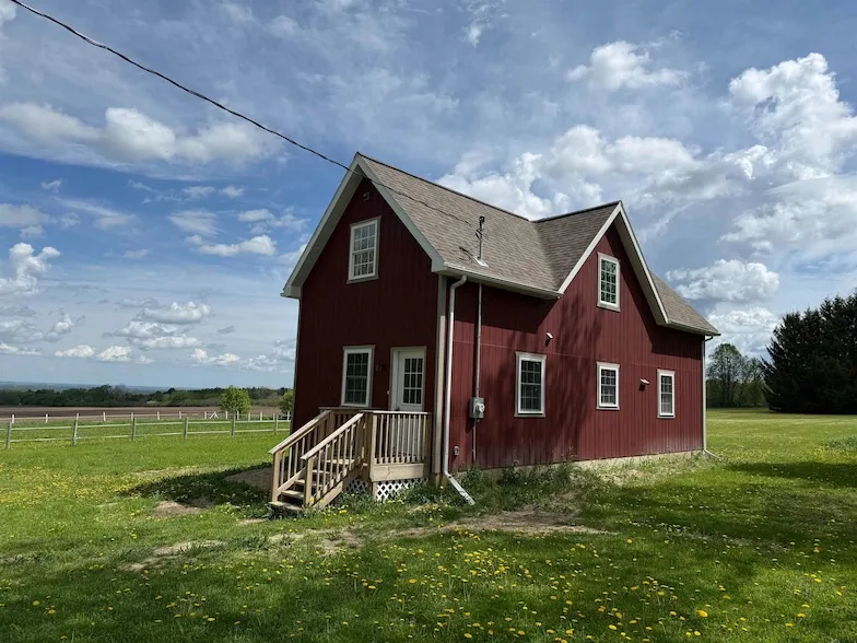 NEWLY BUILT HOME JUST 10 MINUTES FROM MALONE! This beautiful one bedroom, 1.5 bathroom home with all new appliances, a back deck and a porch is situated on a 1.3 acre lot on a dead end road. As you enter the home you will see the entryway with a coat closet for your convenience. Then you will enter the open concept kitchen and living room with lots of natural light. The kitchen has new stainless steel appliances that convey with the home. There is a sliding glass door in the kitchen that leads to the back deck and the back yard where you could enjoy relaxing or having BBQ's and bonfires. There is also a far away view of the St. Lawrence River. There is also a full bathroom on the first floor. Upstairs you will find the spacious bedroom with many windows for plenty of natural light, a walk-in closet and a half bathroom. The washer and dryer are located in the basement and there is plenty of room to add an office, a second living room or just use the space for storage. This beautiful new home could be yours, schedule your showing soon!