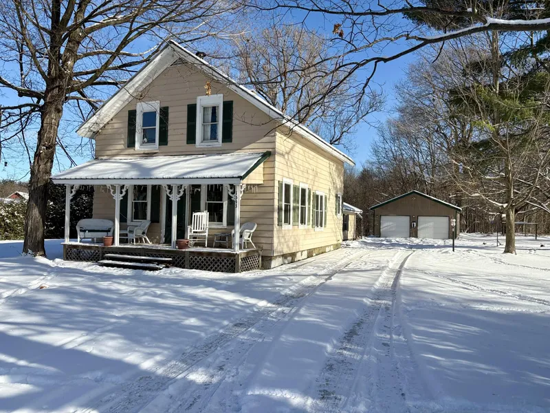 Charming and spacious 5-bedroom, 1.5-bath home set on a peaceful 1-acre lot, located just 10 minutes from Malone. This well-maintained property features beautiful wood floors throughout most of the home and offers an abundance of living space, including two separate living rooms on the main level as well as a dedicated office area. The first floor includes two generously sized bedrooms and a full bath, providing convenient main-level living. Upstairs, you'll find three additional bedrooms and a half bath. Enjoy the outdoors with a large yard ideal for entertaining, gardening, or recreation. The property also includes a detached two-car garage for parking and storage. Situated in a quiet area, this home offers comfort, space, and privacy while remaining close to town.