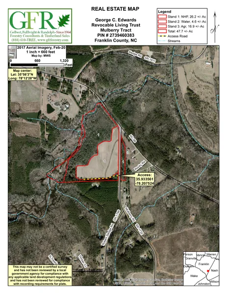 47.7 +/- acre parcel containing 26.2+/- acres of natural hardwood-pine forestland and 16.9 +/- acres of agriculture in Franklin County, NC.