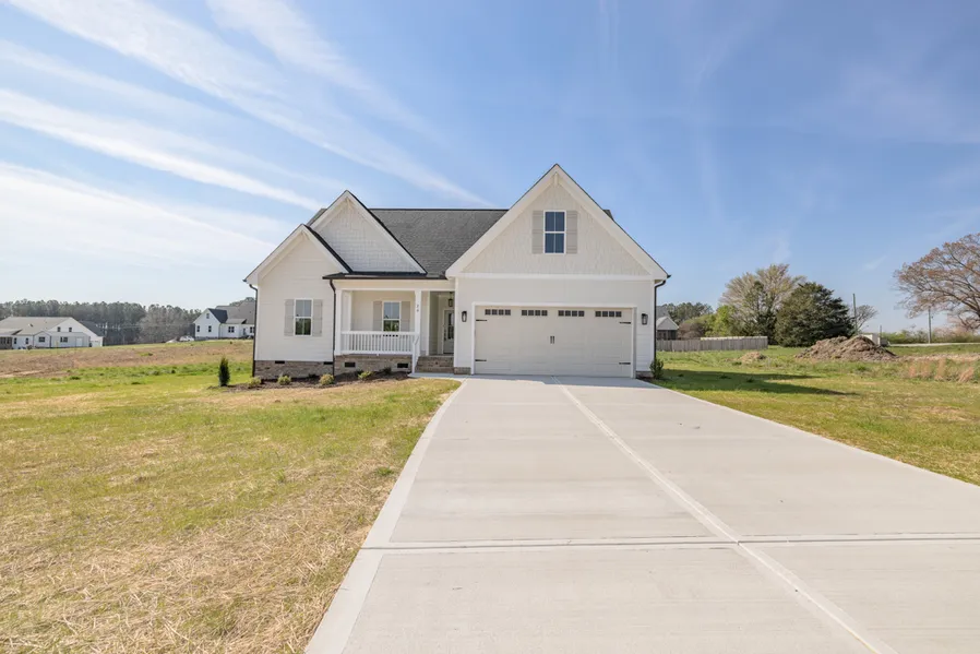 BACK ON MARKET. BUYER's FINANCING FELL THROUGH!!! This NEW CONSTRUCTION home on level 0.77 ACRE country lot is in desirable Franklin Co close to US Hwy 1 and convenient to Wake Forest, Raleigh, Creedmoor, & Durham. Minimal restrictive covenants allow fencing, keeping of boat, RV, camper, and garden. Fiber cement siding. Hard-to-find home with all bedrooms on main level, offering foyer, open-concept great room w/ gas-log fireplace, laundry, & owner's suite plus 2 additional bedrooms and bath. Second floor has spacious bonus room and separate media room, & large walk-in attic for storage or expansion. Garage & concrete drive. Nine-foot ceilings on main. Rear screen porch. Master BR has walk-in closet that has direct access to laundry room! Screened in porch!