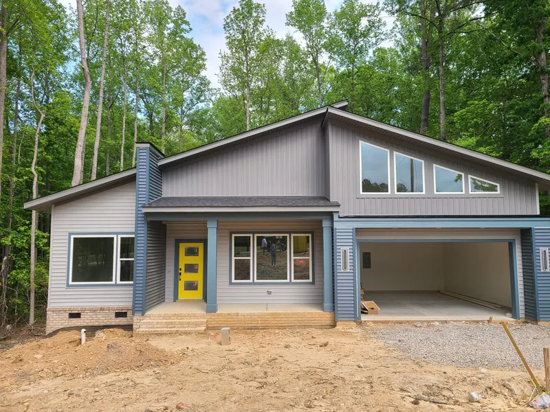 Open concept plan with soaring ceilings and large windows. The foyer hall leads to the open family room with cove molding and custom wood trim around the fireplace with floating shelves on either side. The kitchen features a gas stove and a large center island for entertaining or relaxing with family. The dining area overlooks the private wooded backyard. Hardwoods throughout home except in the bedrooms. The primary suite features raised ceilings, a large walk-in closet and spa bath with custom tile shower and double vanities. The other bedrooms have either 12 ft ceilings or vaulted ceilings. The two-car garage has vaulted ceilings with large windows above garage doors spilling tons of natural light into the garage. The screen porch offers a peaceful retreat to entertain or enjoy nature. Sodded front lawn. This home offers top-of-line quality rarely seen at this price point.