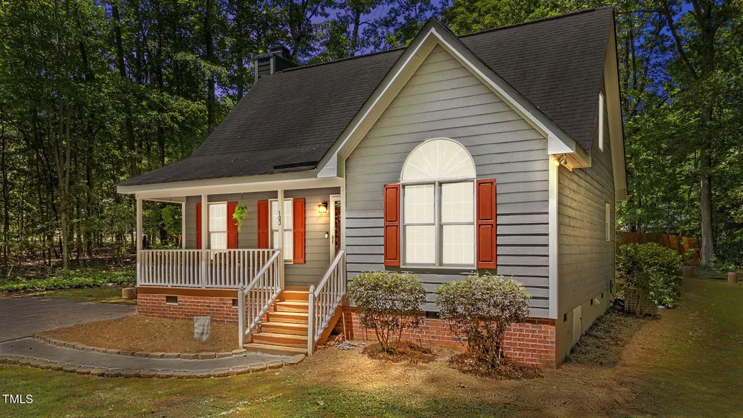 Charming Cape Cod style home nestled between the trees on a .63 acre home site! At the heart of this private gated community is a 345-Acre lake! 1st floor owner's suite! Hardwood style flooring thru-out the 1st floor main living areas! The expansive family room offers chair-rail, a rubbed bronze ceiling fan with light kit, and a fireplace with marble surround and mantel with dentil molding. The bright and cheery kitchen features painted cabinets, quartz countertops that blend seamlessly with the tile backsplash, and stainless steel appliances. The owner's suite has plush carpeting, modern ceiling fan with light kit, and a large palladium window. The adjoining owner's bathroom has been updated with painted white cabinets, quartz countertops with a countertop bowl sink, attractive decorative mirror and 3-bulb light fixture. The 2nd floor offers 2 large bedrooms with hardwood style flooring, a full bathroom, and has an unfinished storage area for ample storage space. Outside, you'll enjoy a screened porch and separate grilling deck overlooking a large wooded backyard. Amenities for community members and their guests include boating, fishing, community swimming pool, lakeside clubhouse, outdoor fitness park, tennis and basketball court, open-air pavilion , 2 beaches, multiple docks, boat launches, playgrounds, and acres of wooded areas, plus many events for all ages.