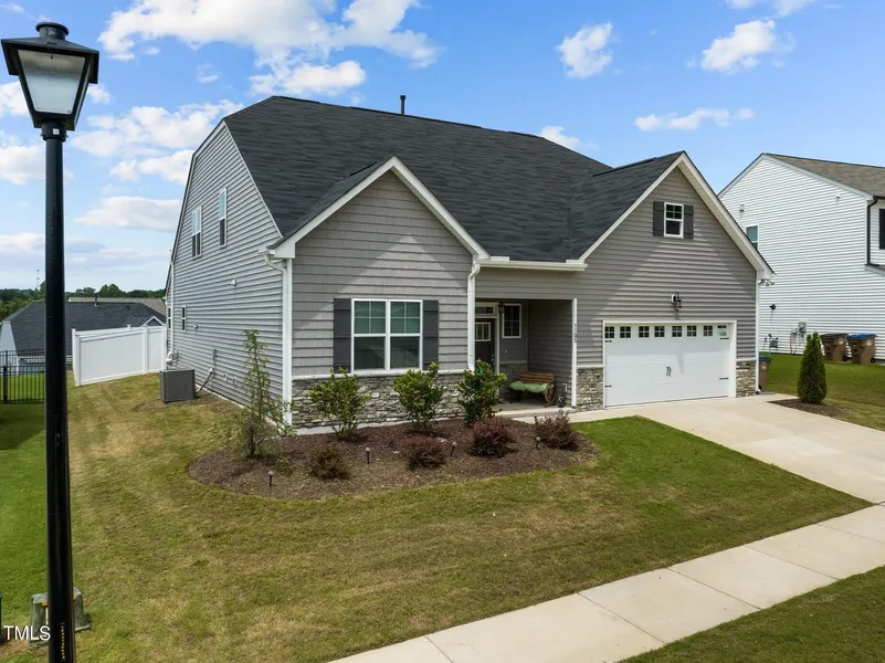 Better than new, custom built by Herring Homes with a freshly painted interior. This east facing home offers a bright and spacious kitchen with walk-in pantry, white cabinetry, white subway tile backsplash and quartz countertops. The large center island with seating and rounded edge features a designer faucet and custom pendant lighting. Stainless steel appliances, include a gas range, built-in microwave and dishwasher. First floor owners suite and first floor guest suite! Second floor bonus room with closets could serve as a second primary suite. First floor primary offers a tray ceiling, large walk-in closet and has a private entry to the patio. The owner's bath features a walk-in shower with glass enclosure, separate vanities, cultured marble countertops, custom cabinets and transom window. Family room with 36'' gas fireplace and custom mantle. Luxury vinyl hardwood style flooring is featured throughout the main living areas. Dining area with custom lighting and glass sliders lead to a covered patio and an additional poured patio and pergola with walkways create a great place to entertain outdoors. All surrounded by a vinyl privacy fence. All of this, and whole house blinds. Washer dryer and refrigerator are negotiable. All furniture in the home can be purchased separately.