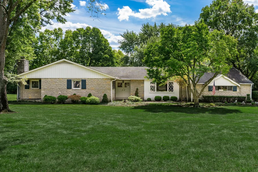 Prominent Upper Arlington location surrounded by million dollar homes. This all stone, expansive ranch home is situated on a private 1+ acre park-like setting. The home offers an open floor plan with great flow and large rooms, including 4 bedroom (or 3 bedrooms plus office), 2.5 baths, oversized living room, family room, and spacious sunroom with a wall of windows providing a panoramic view of the beautiful grounds. You will love the convenience of the large 1st floor laundry, eat-in kitchen, and attached 2-car garage. The huge finished lower level adds over 1,700 square feet of additional living space. Extra features include underground irrigation system, generator, beautiful hardwood floors and Pella wood windows.