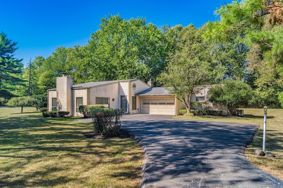 Welcome to this 1+ acre private, serene setting with mature trees, singing birds and occasional visits by deer. The move-in ready house offers an open,spacious floor plan; freshly painted throughout and new neutral carpet in living areas and in bedrooms; vaulted ceiling in living room; recently updatedbaths; two fireplaces (one see-through between the kitchen eating space and the dining room); bonus areas include a garden/greenhouse room, huge 3-season room and a workshop that is accessed from the 2-car garage.