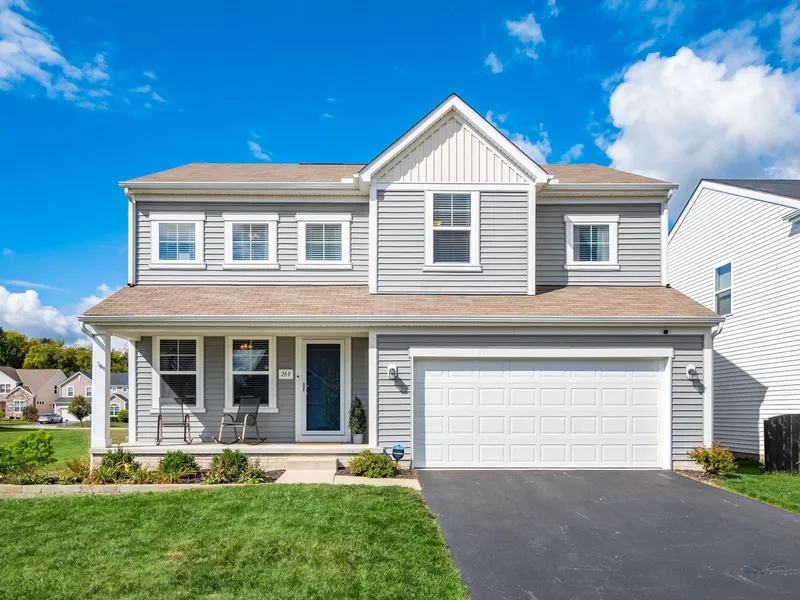 Welcome to this turnkey home in beautiful Summerlyn! From the lemonade front porch, enter into the bright flex room w/ built-ins. Continue into the spacious open concept kitchen, dining & family rooms, and 1st floor laundry. Entire home boasts gorgeous rich brown hand-scraped look waterproof Pergo flooring and tons of natural light. Upstairs has 3 spacious bedrooms (all have walk-ins) surrounding a bright loft area. Primary bed has cozy nook and ensuite with double vanity and soaking tub. Enjoy views of the greenspace from your newer patio in your fenced yard. Finished garage has EV charging outlet. Tucked away in a quiet neighborhood w/ park and pond, but close to freeway access, stores and community amenities. Ecobee, Simply Safe system, workbench, bsmt shelving, garage Fasttrack convey.