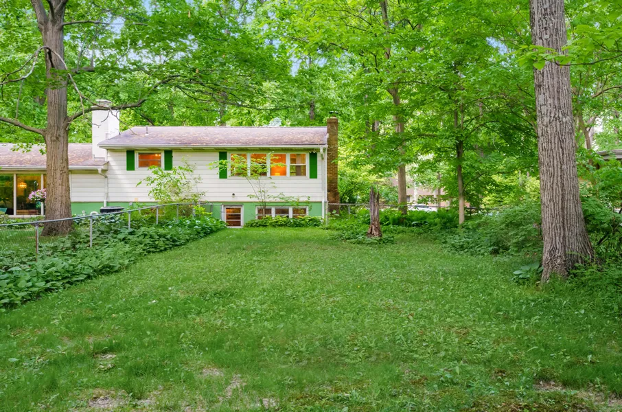 Rare opportunity! This 4 BR, 3 full bath home w/ mid-century modern vibe is located on 1.1 acre, walkable to elementary school! Living room boasts Frank Lloyd Wright inspired fireplace opening to huge windows overlooking 1.1 acre private lot! Screened porch & patio give more gathering space! Family room offers 2nd fireplace & cool 1950's kitchenette/bar, complete w/SS beverage fridge! Den/study has built-in shelving for those who work from home! Primary BR opens to dressing room w/ loads of closet storage & private en suite bath! Kitchen offers double ovens & Kitchen Aid cooktop & oversized 2 car garage is a bonus! Yard is incredible w/many specialized specimen plantings! Home will need paint & flooring throughout; however, this is a gem of a home on a fabulous lot!
