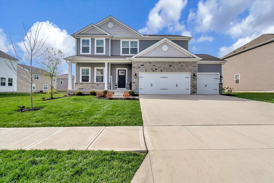 Stunning DR Horton Brookside home with approximately 3150SF of actual living space. A professionally finished lower level has a finished area of approximately 850SF. This home is ready for your entertainment! In addition, this floor plan offers 4 bedrooms, 3.5 bathrooms and a 3-car garage. It also features a large den with double doors, dramatic lighting and a space that creates the perfect in-home office or study. Oversized kitchen with quartz counters, large island, upgraded KitchenAid black stainless steel appliance package, large double pantry with custom built-ins. Huge owners' suite with private en-suite bathroom featuring a double sink vanity and 2 walk-in closets, each with custom organizer shelving. Second floor laundry with custom cabinets. A really beautiful home!