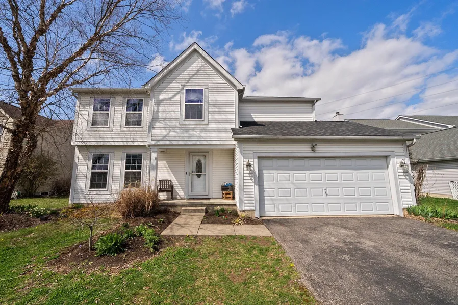 Welcome to this charming 4-bedroom, 2.5-bath home in the heart of Groveport! Featuring a fantastic layout, it offers a formal living and dining area with marble tile flooring. The great room boasts a vaulted ceiling, cozy fireplace, and backyard access-perfect for relaxing or entertaining. The kitchen has ample cabinet space, a functional island, and an open feel. Upstairs, the primary suite offers a vaulted ceiling, walk-in closet, double vanity, and whirlpool tub. Major updates include new furnace & AC (2021), new roof (2021), tankless water heater (2022), and induction stove (2024). Additional highlights include a finished basement, first-floor laundry, and a detached shed with a partially finished play space. Conveniently located near Columbus-schedule your showing today!