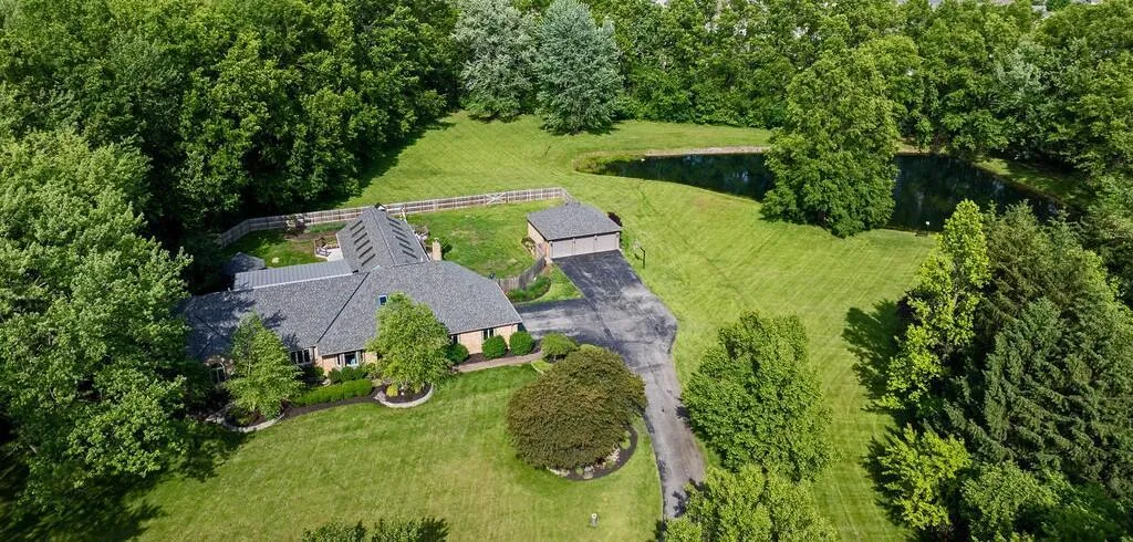 OPPORTUNITY KNOCKS! This is your chance to own an amazing property in a location that is so close to all desired amenities including Easton, the airport, New Albany, Columbus Academy, and 161! This home has been gutted down to the studs and lovingly renovated to a new, bigger and better version over the course of more than a year. This 8.5 acre parcel offers the ultimate in privacy and convenience. Enter the gates and meander down the drive through the wooded setting. This stunning 1.5 story home is revealed along with a large, stocked pond and acres of pristine land bordered by woods and brimming with wildlife! This is as close to a new build as you can get without actually being so. The expansive 1st floor open floorplan features a large Entry, private Office, huge Primary Suite complete with a fireplace, a Dining Rm, and 2 additional Bed Rms and Baths. The gorgeous Kitchen features 2 islands, a casual Dining space, direct access to the Great Rm and the enclosed inground pool! There is even a messy Kitchen, and well-equipped Laundry Rm! Upstairs is the 4th Bed Rm Suite, another private Office, and a Bonus space complete with a Kitchenette. Downstairs is a large Rec Rm with new LVP and plenty of storage. There is a 2-car attached Garage in addition to a 3 car Detached. The outdoor living space features a beautiful deck surround, amazing gazebo, and fenced in area for privacy. There could be much time spent exploring and discovering all the special features of this property. Please contact agent for a complete list of updates as they are vast! Don't miss this conveniently located piece of paradise- you'll certainly want to call this one home!