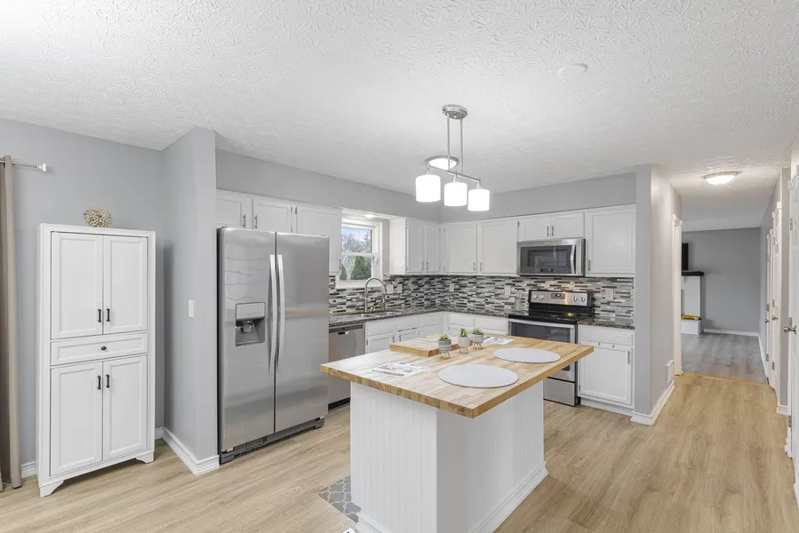 Open House Sunday 02/08 2-4PM. Located in Columbus with Hilliard Schools, this thoughtfully updated home offers comfortable living spaces and flexible room to grow. The front living room is filled with natural light and sets the tone for the inviting first floor. An updated kitchen (2018) anchors the space with a butcher block island and flows seamlessly into the main living areas. LVP flooring, added throughout the first floor in 2018, creates a cohesive look, complemented by updated light fixtures throughout. The family room provides the perfect spot to relax or entertain, featuring LVP flooring, a wet bar, and a sliding door that opens to the paver patio with fire pit (2020)-ideal for outdoor gatherings and evening enjoyment. Upstairs, you'll find four bedrooms, including a spacious owner's suite with a walk-in closet and tile shower. Brand new carpet upstairs (2026). A full hallway bath also features a tile shower, offering convenience and style for everyday living. The partial basement is ready for finishing or additional storage and includes the washer and dryer, which stay with the home. A radon mitigation system is already in place for added peace of mind. New roof 2018, new AC unit 2024, gutter guards added 2024.