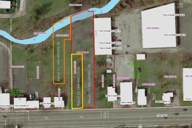 PRIME BUILD SITE! Located between Waggoner and Lancaster on East Main Street. Commercially zoned property consisting of 3 parcels totaling over 1.1 acres! Water, sewer, gas and electric are all available (per Seller any tap fees would be Buyers responsibility). Close to shopping and major arteries. Woods and creek along the rear of the property. Reynoldsburg schools. Only $209,900! Call DeLena today!
