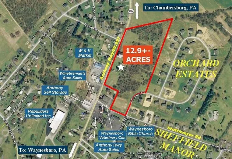 13+- ACRES of PRIME COMMERCIAL LAND! Outstanding opportunity w/ endless possibilities. Over 750ft of frontage on HIGH TRAFFIC PA Rt.997 and frontage on Stottlemyer Rd. Less than 1 mile from the square of Waynesboro.