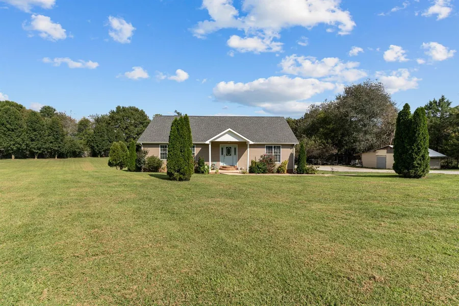 Beautiful move-in ready home on over 2 secluded acres. Best of both worlds, private country feel but close to town. Gently sloping and private manicured yard is surrounded by mature green giants planted by sellers 15 years ago. TONS of room - 4 spacious bedrooms and 2 bonus rooms have potential of 6 bedrooms. 3.5 bathrooms, 2.5 downstairs and new full bath upstairs. Large storm shelter in basement. Owners have recently installed brand new dimensional roof, brand new granite countertops in kitchen, remodeled upstairs full bath. Multiple storage buildings to remain. Yard also has beautiful apple, pear, and peach trees.