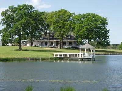 50 rolling and treed acres just 3 minutes from historic Mount Vernon in East Texas. Beautiful setting, private and secluded. Country home with covered and screened porches overlooking your own heavily stocked 4-acre fishing lake, plus 5 ponds. The home has a huge basement. Study can be easily converted to a 4th bedroom. Excellent pastures combined with large hardwoods. Lots of wildlife. 120X50 barn for private parties and weddings. Commercial kitchen, bandstand and separate sports bar. Caretaker's house. Enjoy and develop! 121 additional acres available