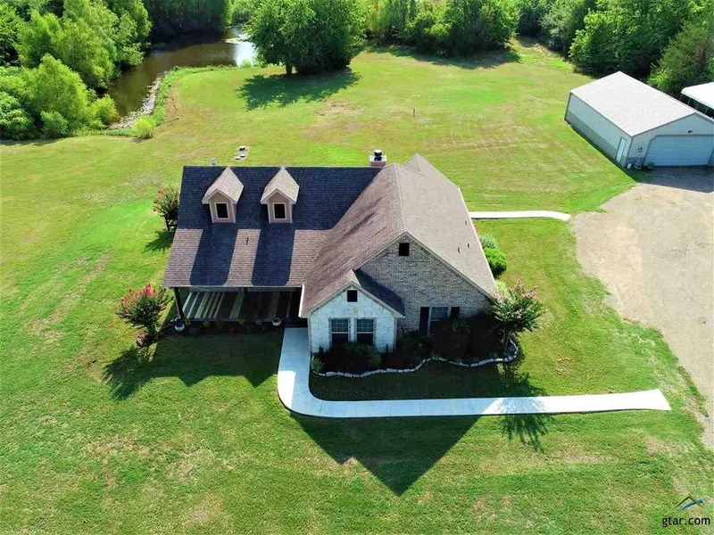 Beautiful Piece of Property on Manicured 13 acres. The perfect combination of trees and open areas. This Austin Stone & Brick Home sits off a nice county road overlooking a good sized Pond. Sit out on the covered back porch and enjoy a gentle breeze while watching the birds and wildlife. The Open Concept Living Area has vaulted ceiling w/ beams and Stone Fireplace. The gourmet kitchen includes an oversized single level island, granite countertops, stainless steel appliances and large built-in refrigerator. The acreage is surrounded by mature trees and partially fenced. Top it all off with a 30 x 45 metal building wired for 110 & 220, and a two car metal carport. Your money is well spent here!