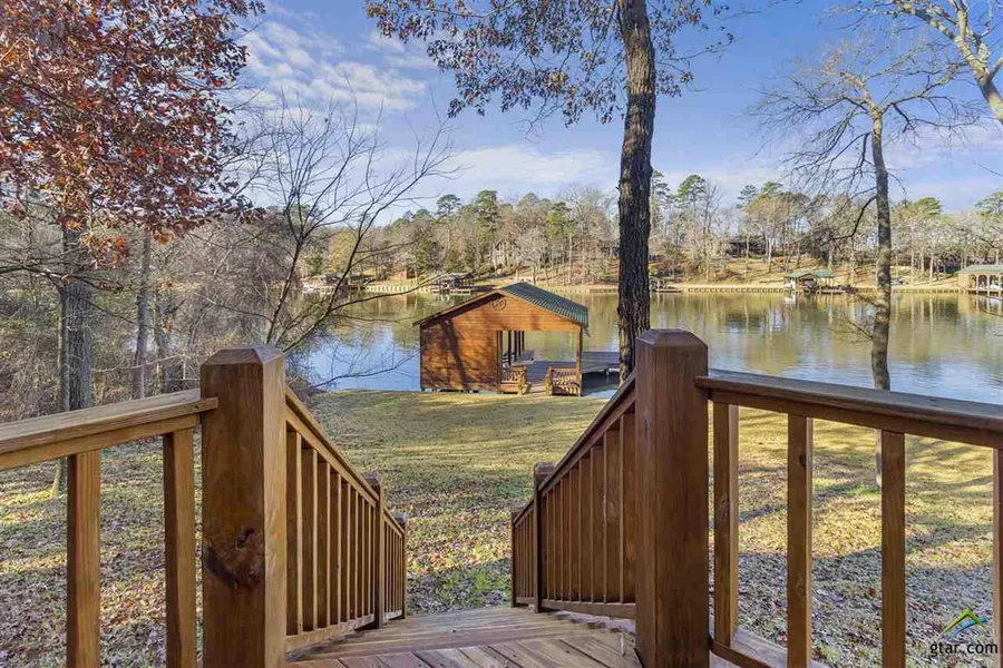 The Classic Lakehouse. Vaulted Ceilings, Big Windows and Great Room that accommodates Everyone! Enjoy Wood Ceilings, Wood Floors, Rock Fireplace and Open Floor Plan. This 3 bedroom 2.5 Bath plus sleeping loft can sleep a crowd. Property has everything you need to "Getaway" to beautiful Lake Cypress Springs because it comes furnished! Nice 1.5 stall boathouse with large covered deck, lifts and storage. This double lot location with gorgeous towering trees allows for privacy and space. Great Views and Water Depth