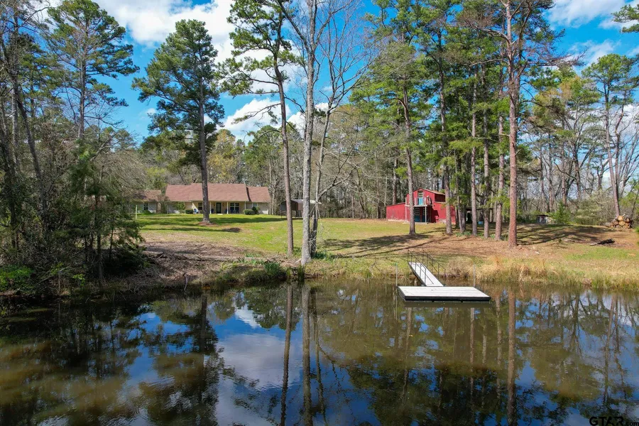 The best of both worlds! Updated 3 bedroom (additional office/possible 4th bedroom), 2 bath home on 8.5 acres near beautiful Lake Cypress Springs, but minutes from historical Mt. Vernon and Winnsboro. Providing additional privacy, this property sits off from the road (shared driveway easement) and is surrounded by majestic pines and hard woods. Relax on your covered front porch overlooking your own private pond. The home includes both a formal dining room and breakfast nook off the gourmet style galley kitchen with custom wood cabinets, stainless appliances, and breakfast bar. The family room has vaulted ceiling and features a large gas log fireplace and wet-bar and real wood floors. The master suite includes vaulted ceiling with ceiling fan and the master bath includes a large walk-in closet, separate sinks, oversized shower, and jetted garden tub. The property also includes a 2-car garage and a RV car-port plus an additional 2 vehicle car-port and a barn for storing all your equipment and “toys”. Currently providing additional income as a VRBO. Call the listing agent today to schedule your private showing of this rare property.