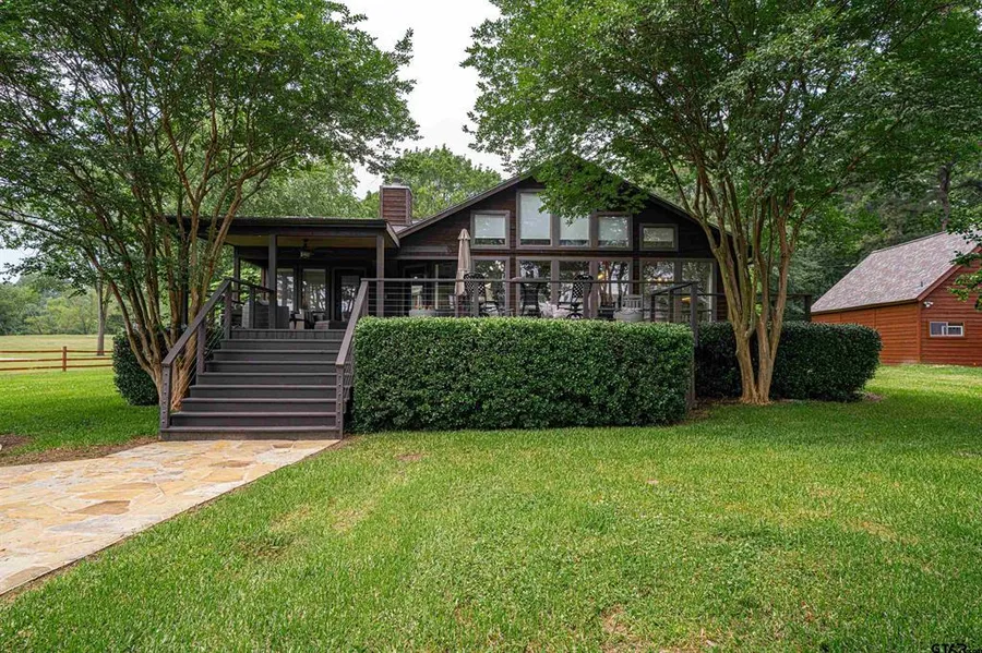 Welcome to your idyllic waterfront retreat on Beautiful Lake Cypress Springs, located in the premier gated community of Eagle Point. This fantastic cedar home offers not only breathtaking lake views but also an array of luxurious features and amenities designed for the ultimate in lake living. Updated in 2018, this 3-bedroom, 2-bathroom, 2-car detached garage home showcases a great room, kitchen, and dining area with an open living concept that exudes modern elegance and comfort. Cathedral ceilings and a wall of windows frame the picturesque lake views, filling the space with natural light. The stone fireplace with gas logs adds a cozy touch, perfect for cool evenings by the fire. The kitchen is a chef's delight, featuring stainless steel appliances, a breakfast bar, and ample counter space for repairing gourmet meals. The split primary bedroom offers privacy and convenience, with direct access to the covered deck. The ensuite bathroom both double vanities, a spacious walk-in shower, and a large closet, providing a luxurious retreat. Outdoor living is a highlight of this property, with both open and covered decks offering plenty of space for relaxation and entertainment. Enjoy the hot tub while taking in the serene length views or gather around the fire pit with family and friends. The property also includes a storage building that could serve as a small bunkhouse, providing extra space for guests. The 2-stall boathouse with its lifts and additional floating dock for jet skis ensures endless water activities and fun. There's plenty of area to park boat and jet ski trailers, making it easy to launch and retrieve your watercraft. Most furnished things will convey with the property, making this home move-in ready for summer lake living. Embrace the southern breeze and the tranquility of Lake Cypress Springs in this exceptional Eagle Point home. Experience the best of like living in this luxurious and inviting retreat.