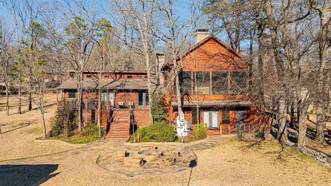 STUNNING WATERFRONT HOME ON LAKE CYPRESS SPRINGS. Enjoy breathtaking lake views, luxury amenities, and move-in-ready comfort! This beautifully designed 4-bedroom, 4-bathroom lakefront home offers 3,010 sq. ft. of inviting living space, combining rustic charm with modern conveniences. Vaulted ceilings, wood accents, and a warm, wood-burning fireplace make the great room the heart of the home, while expansive windows provide stunning main lake views. Interior Features:Spacious Great Room – Soaring vaulted ceilings, wood-burning fireplace, and a wall of windows showcasing the lake. Second Living Area – Cozy with an additional wood-burning stove for extra comfort. Well-Appointed Kitchen – Stainless steel appliances, a large island, and ample cabinetry. Primary Suite & Basement Bedroom – Both with serene pine views of the lake. Jack & Jill Bath – Perfect for guest convenience. Flooring – Beautiful pine wood and tile floors throughout. Laundry Closet – Convenient and well-placed for easy access. Two HVAC Systems & Surround Sound – Modern comforts for year-round enjoyment. Outdoor & Waterfront Amenities: Boathouse (2,125 sq. ft.) Featuring two boat slips & a double jet ski lift. Screened Porch Off Great Room – Perfect for enjoying peaceful lake mornings. Fire Pit Area – Ideal for cozy nights under the stars. Floored Storage Under House – Plenty of space for all your lake essentials. Bug Misting System – Keeps outdoor spaces comfortable. Detached 2-Car Garage – Conveniently located across the street.Roof Only 5 Years Old – Low-maintenance and move-in ready! Property Detail- 0.926 Acres in a prime lakefront location. Fully Furnished – Just bring your bags!This is a rare opportunity to own a turnkey waterfront retreat in one of East Texas' most sought-after lake communities. Whether you're looking for a permanent residence or a vacation getaway, this property is ready to welcome you home.