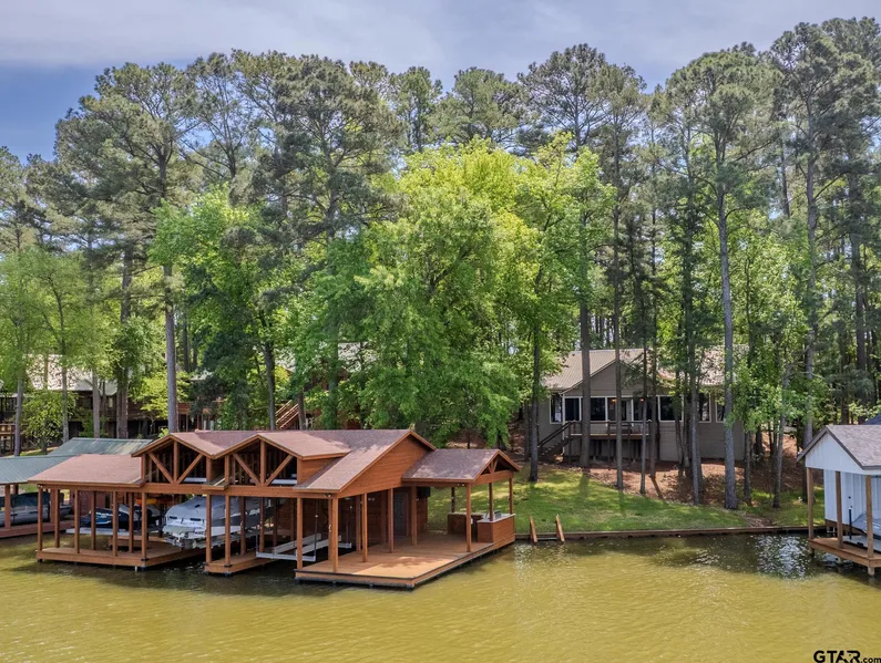Beautiful Waterfront Home located in prestigious Panther Creek on Lake Cypress Springs! Panther Creek, known for its charming topography, is winding and beautifully wooded set in the East Texas pines. Positioned to capture incredible lake views, the home is nestled in the tall pines on a deep .7 acre lot allowing for plenty of parking for family and friends. The home offers several outdoor gathering spots to experience lakeside living ... a newly updated 300 sf screened porch opening to a new deck overlooking the boathouse. This incredible boathouse features 2 stalls for boats, a separate stall for 2 jet skis and tons of storage for water toys. The partially covered deck features a sitting area with a grill, refrigerator, and TV for hours of entertainment. Rope lighting is installed for finding your way back after a night on the water, and the Sunsets are Spectacular! A new lighted sidewalk has been recently added from the deck to the boathouse. Step inside to the open-living concept, bright and airy with hardwood floors, a wall of windows and wood-burning stone fireplace, currently gas logs. Beautifully updated kitchen with oversized island, breakfast bar, farm sink, 5-burner gas cooktop, double ovens, ice maker, wine cooler and walk-in pantry. Spacious primary suite has a separate entrance to the screened porch and includes 2 walk-in closets and an updated bath with huge shower, two sinks and linen closet. The 2 guest bedrooms share an updated hall bath. The laundry room connects to a two-car garage with plenty of storage for tools and additional water toys. The home is equipped with an insect misting system, a generator and sprinkler system for the lakeside yard. Very well maintained and Comes Furnished! Move-in Ready! Schedule your private showing today!