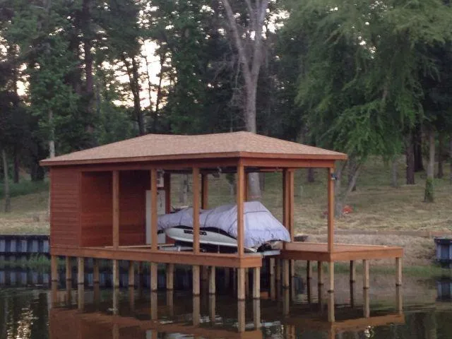 3.7 Acres Wooded and cleared with BOATHOUSE and ready to build on. Just bring your plans and be in your lake home by summer or invest for the future. Water main is already brought to the home site and run down to the shoreline. Electric panel is brought to the home site and the boathouse. Driveway is installed. There is approx. 152 feet of shoreline with 110 feet of vinyl (upgrade over wood) retaining wall already installed and a gorgeous 24 x 36 Boathouse with storage room, stereo system, remote controlled boat lift for up to 24' boat and an outdoor kitchen with grill. 2500 sf min. home. Excellent location, awesome views and the only lot available currently this beautiful gated subdivision of Caddo Point Estates. Don't miss out on this dream corner lot.