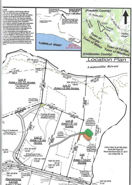 Country lot with some woods, an open field and 538' of frontage along the Lamoille River. River ambience at it's best, canoeing/kayaking, fishing, swimming or just sit on the bank and enjoy the serenity. House site is up high and dry. Septic design is for a 4 bedroom Advantex system design. Map included is docs. State wastewater permit WW-6-3827-4. Seller needs to approve house plans prior to submitting for building permit. No mobile homes, manufactured homes, tiny house or metal buildings. Road is a Class 4 road which means it is to be privately maintained. THe seller will continue to maintain until the last lot is sold. Then the 9 owners will equally be responsible to maintenance and repairthe road. The small bridge is the Town's responsibility.