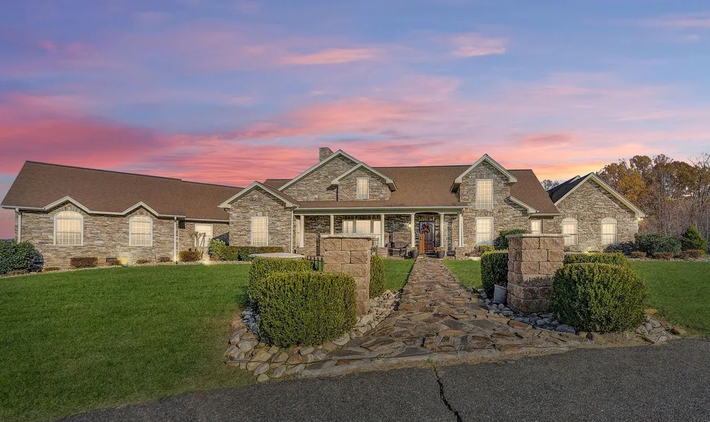 A Stately Home on 11.96 acres offering Mountain, Sunrise & Sunset Views! Beautiful Custom Kitchen w/Island, Granite C/T & Stainless Appliances, Open to Breakfast Area & Dining Rm. Stone Fireplace in Family Rm, Huge Master Suite w/Custom Vaulted Wood Ceiling, Spacious Private Bath & WIC. Office on Main Level. (2)Large Bedrooms on Upper with Full Bath. Outdoor Entertaining At Its Finest: Custom Patio, Fireplace, Gazebo PLUS Interior Bar, Game Rm or Staging Center for Business Opportunities: Wedding Venue, Event Center, Office & more. Add'l 22x32 Barn, Pasture & much more! Must See to Appreciate!