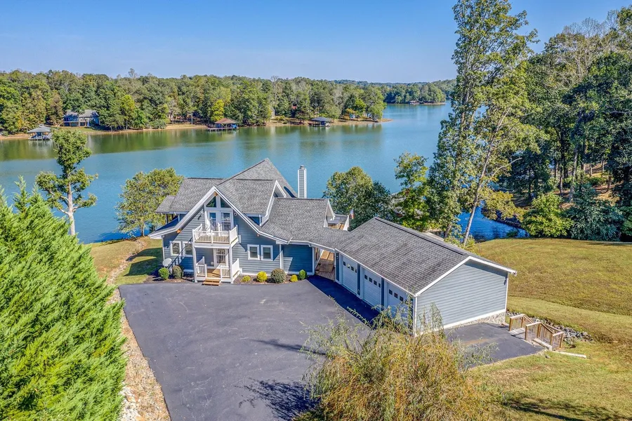 Lendal Baker Series Custom Home-post & beam construction, cathedral ceilings in all rooms. Master bedroom loft w/double custom tiled shower (windows for beautiful lake views) walk-in closet, balcony. Entry level foyer, open kitchen, great room w/beamed stone fireplace. Granite countertops, pantry, 2 bedrooms on entry w/ master bedroom option. Ceramic, granite. Mud room/laundry, 12x12 screened waterfront deck. Lower level game/family room, awesome wet bar, master suite w/walk-in closet, jetted tub, ceramic tile & exercise room. Detached 24x32 garage w/Lower level 800 square foot apartment. Also 18x26 detached garage, paved drive. Huge concrete patio (dry under deck) built-in firepit. Dock w/lift, 18x10 floater, lighting, kayak suspension system x2
