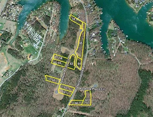 From Route 40 in Penhook, Va. (approx. 18 miles east of Rocky Mount, Va. and 14 miles west of Gretna, Va.) turn north on Morgans Fork Rd. Go 7/10th of a mile and turn right on Jefferson Dock Road. Go 9/10th of a mile to property on both sides of the road.