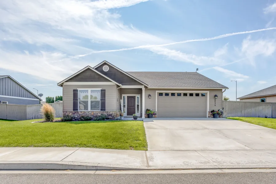 You'll feel right at home in this inviting West Pasco rambler! All on one level, offering 1825 sq ft of living space, an open floor plan with vaulted ceilings, large windows, corner gas fireplace, and a fantastic kitchen that features an island, granite counter-tops, stainless appliances w/gas range, tile floors, beautiful wood cabinetry, pantry and dining area with access to the patio. You will also find a laundry room with extra storage cabinets, 3 bedrooms and 2 bathrooms, including a generous sized master suite with walk-in closet, dual sink vanity, and shower. You will enjoy the fantastic outdoor space this home provides, with a covered patio area for entertaining, fenced yard, and room to play. Located in a quiet neighborhood with nearby Desert Dunes Park, schools, and easy access to West Pasco amenities.